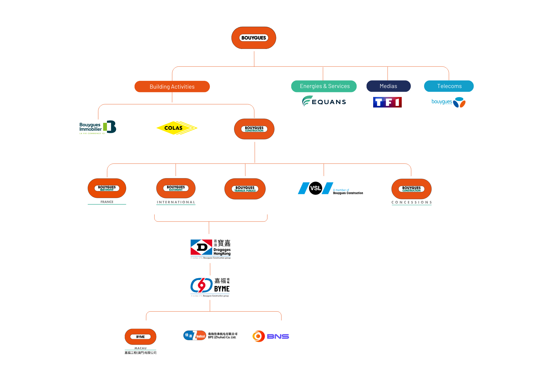 BYME Engineering is part of Bouygues Construction, a global leader in the building works, civil works, electrical contracting and maintenance sectors. We have been operating as the subsidiary of Dragages Hong Kong and delivering a range of landmark projects for the city. Expanding our reach, we have also established offices in Macau and Zhuhai, allowing us to capitalize on emerging business opportunities in the region.